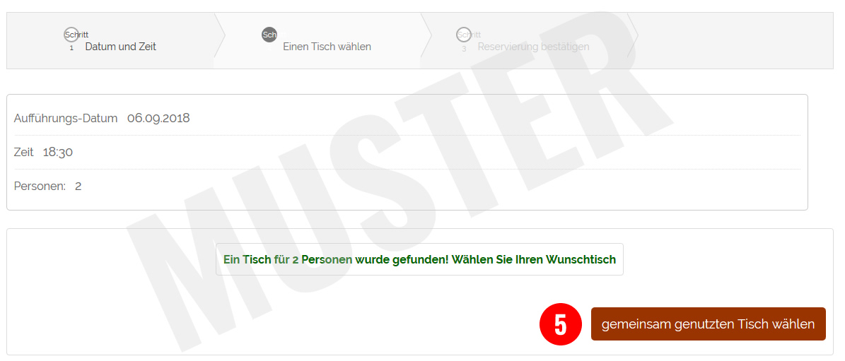 Wenn ein Tisch für das von Ihnen angegebene Datum, die Uhrzeit, sowie die Personenanzahl noch frei ist, dann erhalten Sie die nachfolgende - in grün dargestellte - Anzeige.