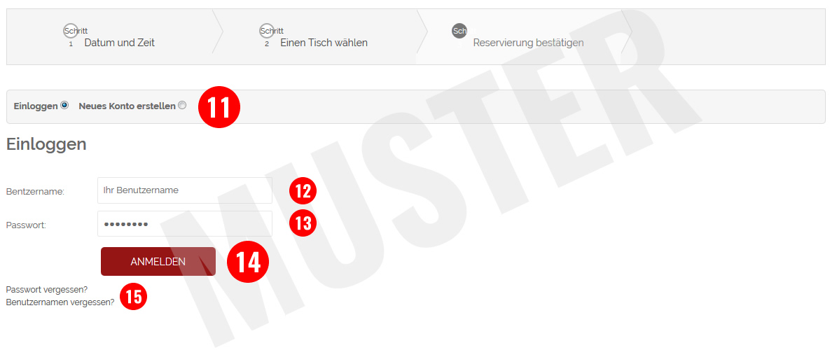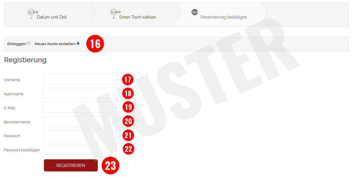 Sie haben sich bisher noch nicht für die Online-Tischreservierung registriert? Dann klicken Sie jetzt auf den Reiter "Schritt 6".