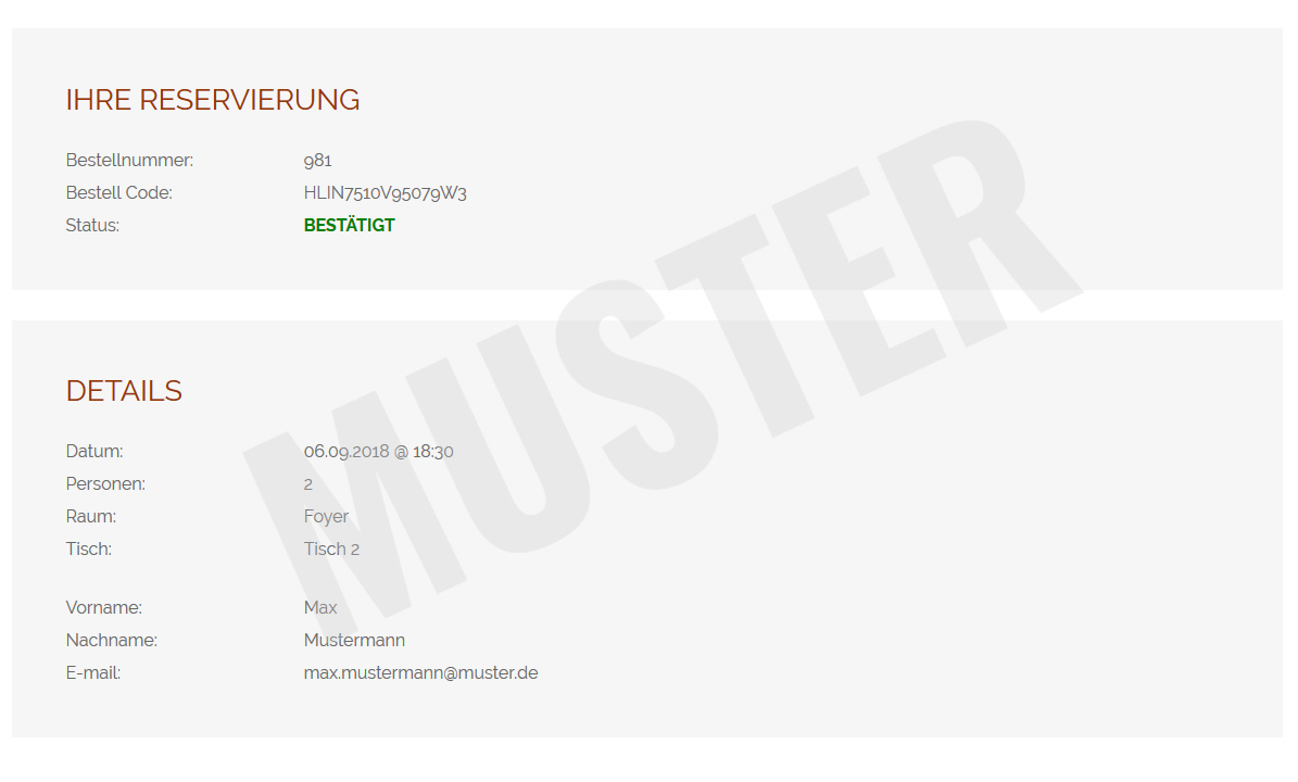 Sie erhalten eine E-Mail mit der Reservierungsbestätigung.