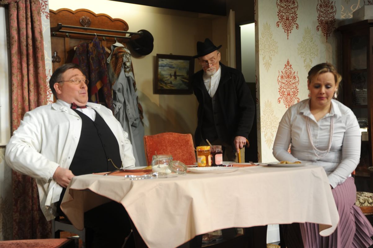 Sparsamkeit kann eine Tugend sein, doch bei dem alten Schneider Nörig ist diese Tugend in Geiz umgeschlagen. Pfannkuchen mit verschiedenen Sorten Marmelade ist für ihn die pure Verschwendung. Durch diese Sparsamkeit gerät er in die Hände des habgierigen Schneides Krup, eines alten Junggesellen und dessen Schwester Manda, einer giftigen älteren Jungfer. Diese beiden falschen Menschen geben sich als seine Freunde aus und Nörig bringt Ihen volles Vertrauen entgegen. Währenddessen ist er fest davon überzeugt, dass seine Töchter und Schwiegersöhne, allesamt prächtige Menschen, denen er das Leben schwer macht, ihn betrügen.